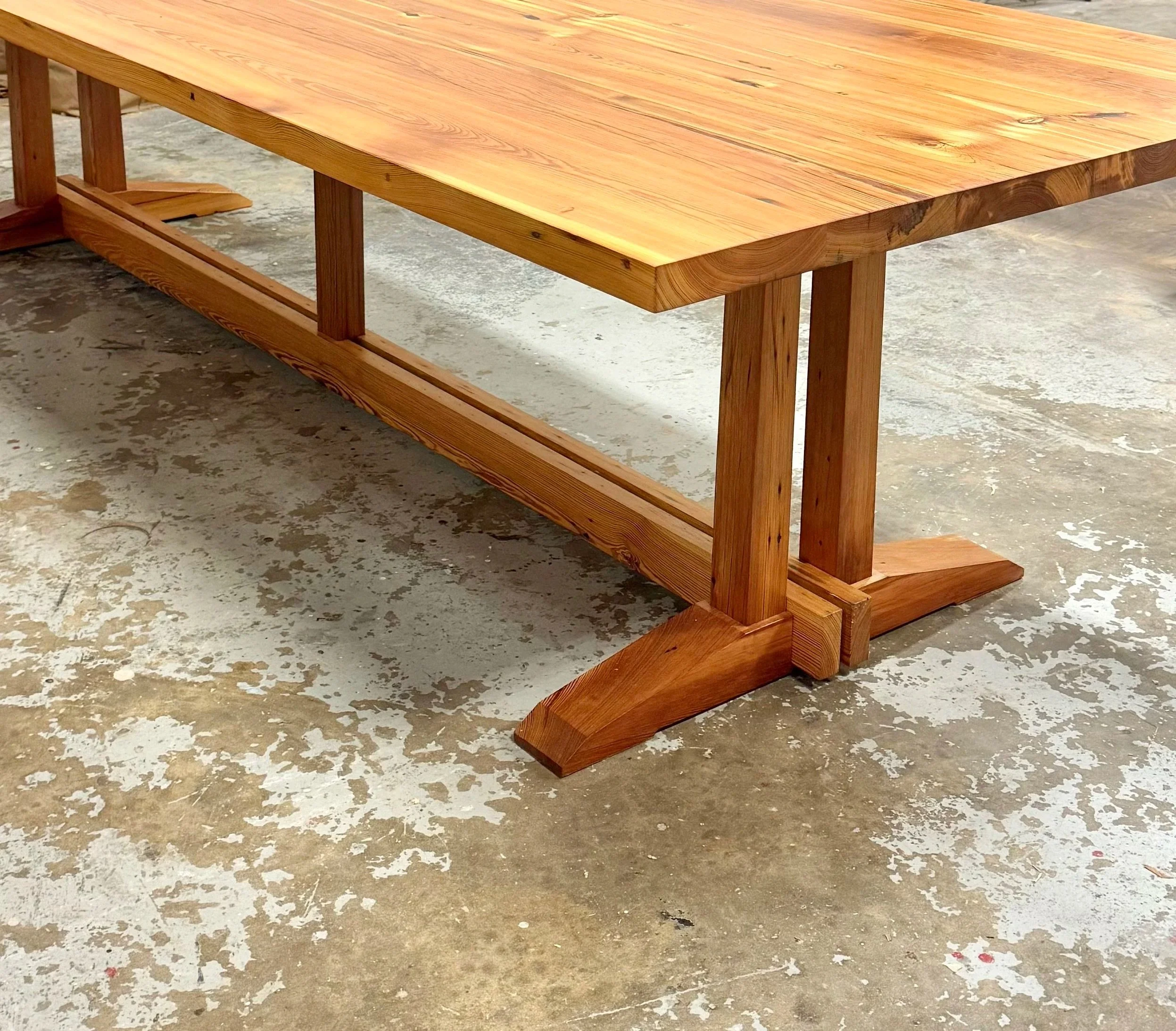 Featured Projects Joist Table Top with Jumeaux Table Legs Jumeaux Table Legs Hearth Heartpine Bench Live Oak Custom Table Top Heartpine Countertop French Polished Mahogany Book matched veneer